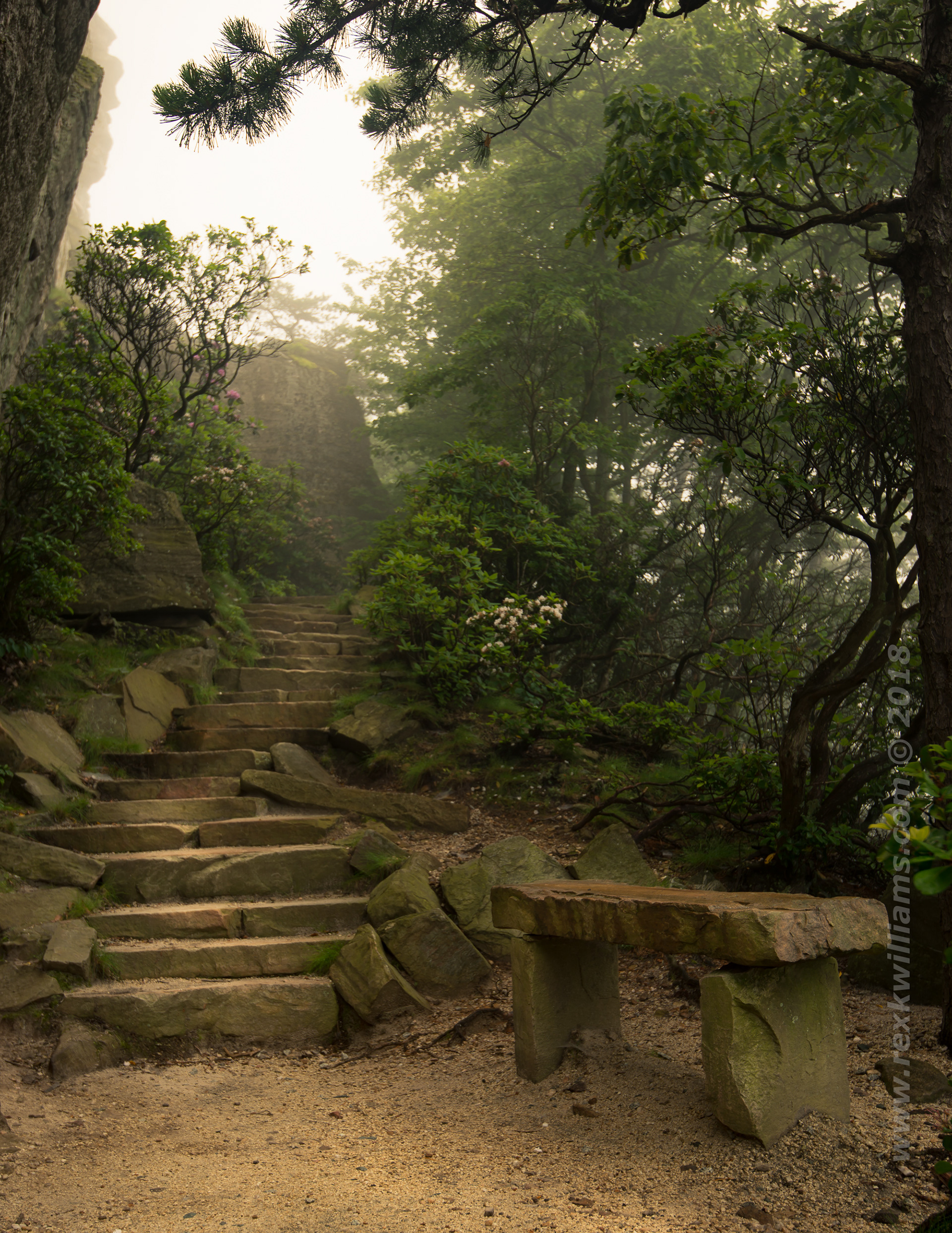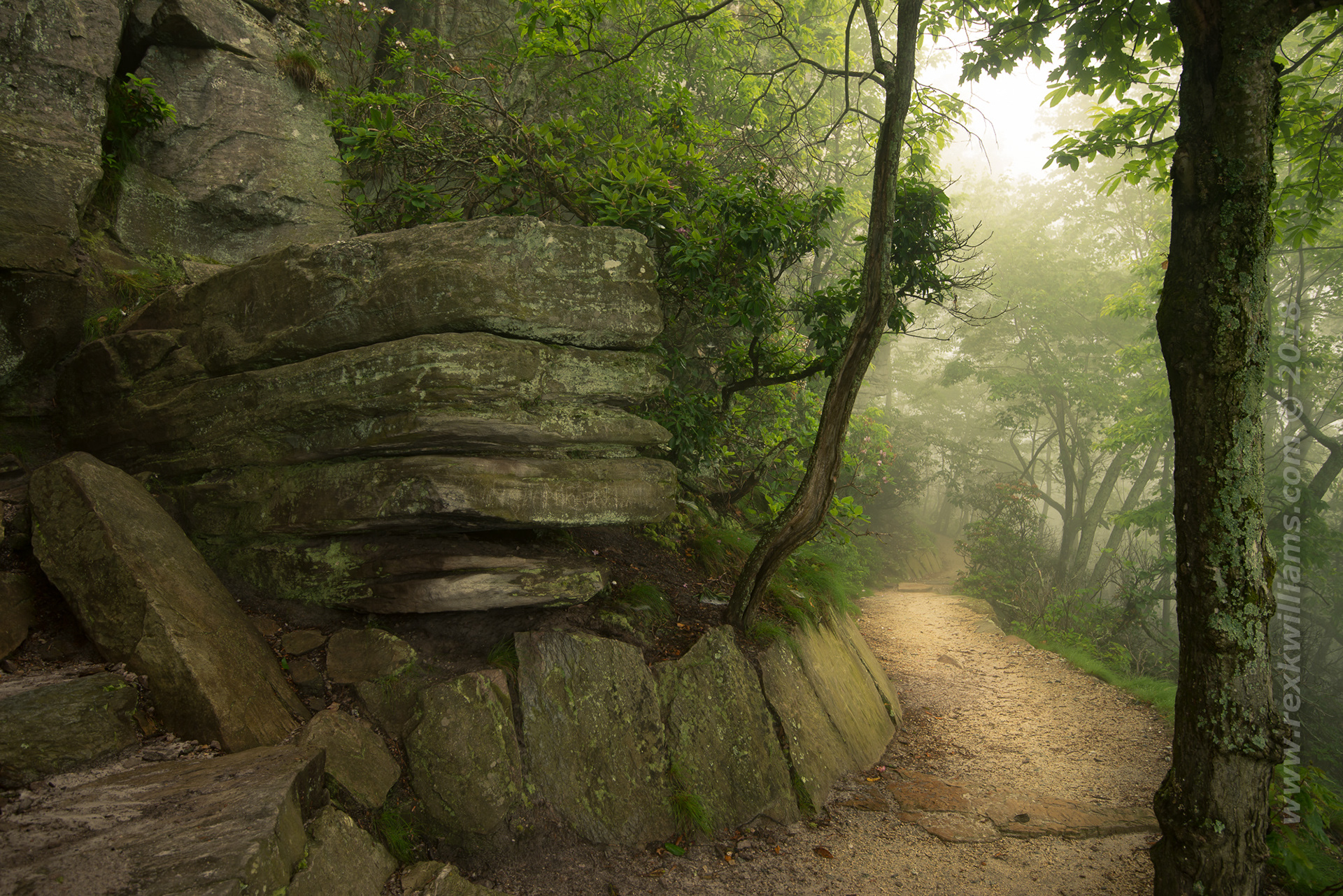 A hike around Pilot Mountain on a misty day with an occasional splash of sunshine.